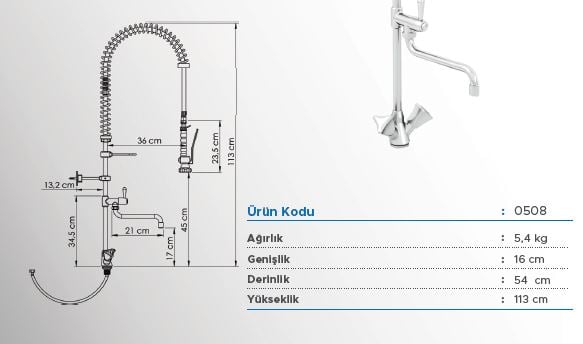 Sağlam gövde, deluxe tasarım ve ara musluklu pratik yapısıyla bu model, ön yıkama sprey üniteleri kategorisinin öne çıkan seçeneklerinden biridir. Profesyonel mutfaklarda hijyen, dayanıklılık ve kullanım kolaylığını bir arada sunar.