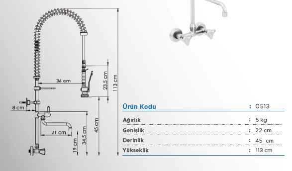 Sağlam gövde, deluxe tasarım ve ara musluklu pratik yapısıyla bu model, ön yıkama sprey üniteleri kategorisinin öne çıkan ürünlerinden biridir. Profesyonel mutfaklarda dayanıklılık, hijyen ve kullanım kolaylığını bir arada sunar.