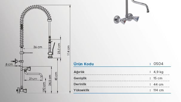Sağlam gövdesi, ara musluklu yapısı ve pratik kullanımıyla bu ürün, ön yıkama sprey üniteleri kategorisinin öne çıkan modellerindendir. Profesyonel mutfaklarda hem su tasarrufu hem de dayanıklılık arayan işletmeler için ideal bir tercihtir.