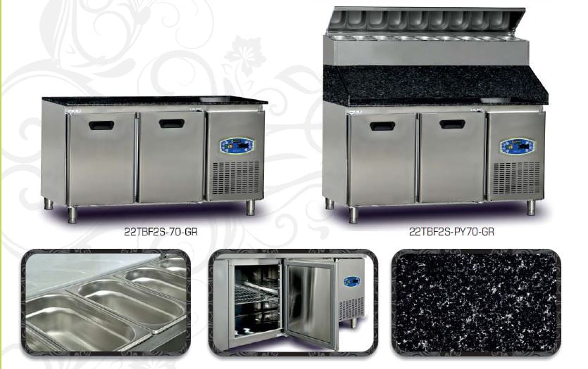 Dampak Tezgah Tipi Buzdolabı Granitli, Tek Kapılı Pizza Hazırlık Dolabı 196 litre 100 x 70 x 109 (cm) (22TBF1S-70-GR)