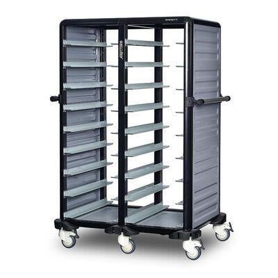 Gastrolley İkili Termo Tepsi Arabası, 9 tepsiyi verimli bir şekilde taşımak üzere tasarlanmıştır. Paslanmaz çelik malzemeden üretilmiş olan gövdesi, arabanın bakım ve temizliğinin kolaylaşmasını sağlamaktadır. Dizel ve gaz yakıtlı motorlarla çalışmak üzere uygun şekilde tasarlanmış olan bu araba, maksimum kapasitesi 9 tepsiye ulaşmaktadır. Çift bölmeli tasarımı sayesinde, termostat özelliği ile her tepsinin ayrı ayrı sıcaklığının ayarlanması mümkün olmaktadır. Hem arka hem de ön tarafı açılan 2 kapalı bölmeli olan bu araba, güvenli taşıma şartlarını garanti etmektedir. Arabanın çok yönlü hareketliliği, yüksek kapasite ile birlikte ekonomik maliyetler sağlayacak bir seçenek olmaktadır.