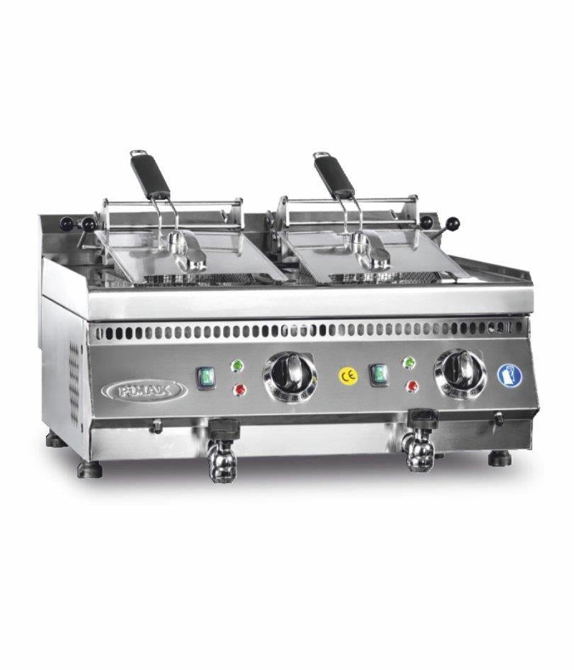 Pimak 70SE-M073, profesyonel mutfaklarda yüksek kapasite ve güvenli kullanım sunan elektrikli fritözdür. Paslanmaz çelik gövdesi, termostat kontrollü ısıtma sistemi ve dayanıklı yapısı ile uzun ömürlü kullanım sağlar.