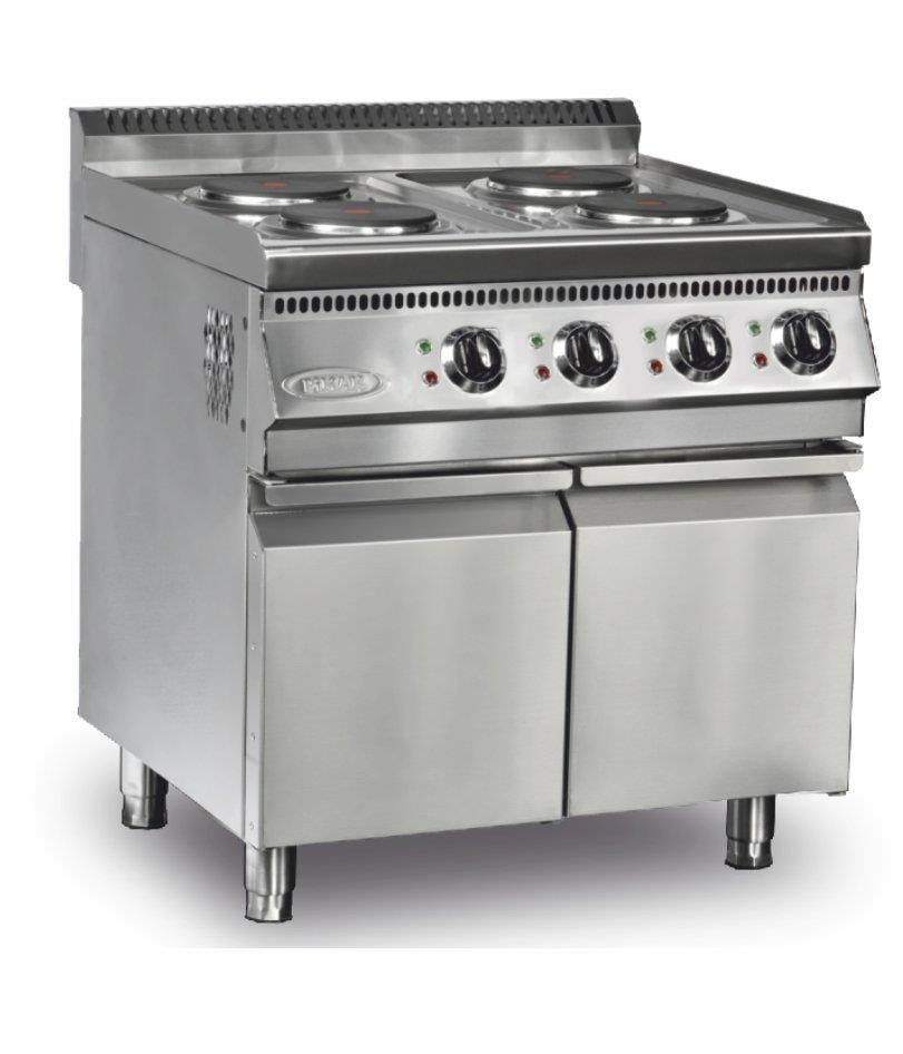 Pimak 70SDE-M182, endüstriyel mutfaklar için tasarlanmış, 4 gözlü elektrikli bir ocaktır. Trifaze besleme voltajı ile yüksek enerji verimliliği sunar. İki kademeli ısıtıcı pleytler ve yuvarlak veya kare ısıtıcı pleyt seçenekleri ile esnek kullanım imkânı sağlar. Paslanmaz çelik gövdesi ile uzun ömürlü ve hijyenik bir kullanım sunar.