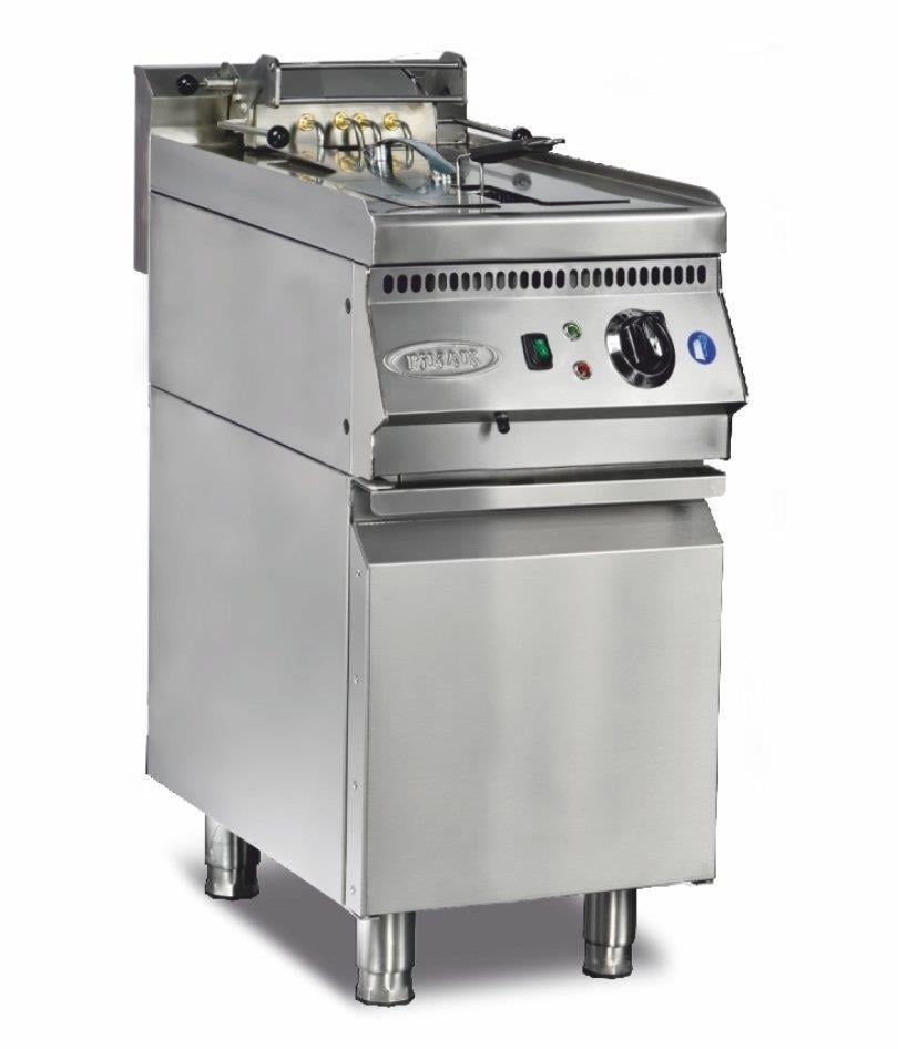 Pimak 700 Seri tüplü fritöz, 12 L kapasitesi ve 40×70×85 cm ölçüsüyle profesyonel mutfaklar için uygundur. Tüplü çalışma sistemi hızlı ısınma ve homojen pişirme sağlar. Paslanmaz çelik gövdesi dayanıklı, hijyenik ve kolay temizlenebilir yapısıyla restoran ve kafelerde güvenle kullanılabilir.
